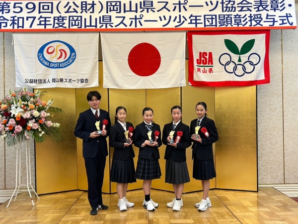 ✨スポーツ賞受賞のお知らせ✨ 【第59回(公益財団法人)岡山県スポーツ協会表彰式】日時:令和8年2月22日(日)会場:ピュアリティまきび ◆優秀選手・団体賞◆青木祥真 小竹森千嘉 赤松萌香山内美来赤堀乃香(所属は全てOS・・・